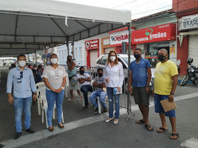 A vice-prefeita Kátia Alves acompanha de perto com sua equipe e as pessoas ficam em filas específicas, com prioridade para idosos, gestantes e deficientes.