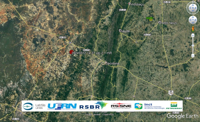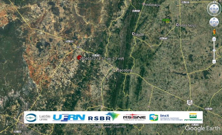 Nesta sexta-feira (12), às 14h37 UTC (11h37, hora local), um tremor de terra, de magnitude preliminar 2.1 mR, foi registrado no município de Jacobina, na Bahia. O evento foi registrado pelas estações sismográficas operadas pelo Laboratório Sismológico da UFRN. A estação sismográfica mais próxima está localizada no município de Ponto Novo, que fica a aproximadamente 57 km de distância de Jacobina.