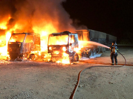 Guarnições foram deslocadas por volta das 00h30 e encontraram os veículos em chamas no pátio de um posto de combustível. Os bombeiros, então, atuaram para evitar a propagação do fogo aos semirreboques, uma vez que os cavalinhos já haviam sido atingidos.