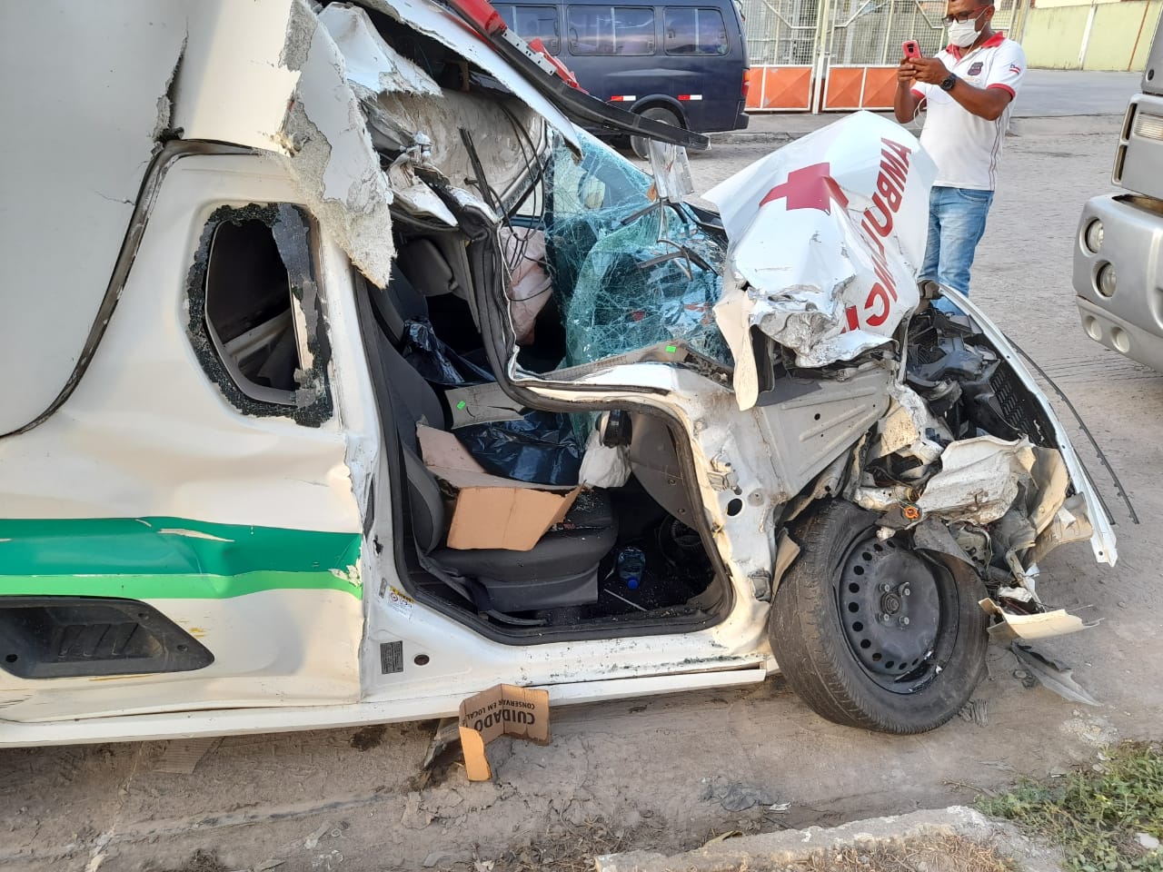 O passageiro do banco carona teria ficado preso às ferragens e a cabine da ambulância teve de ser cortada, para que a vítima fosse retirada.