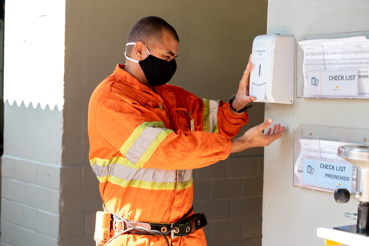 Diálogos Diários de Segurança (DDS´s) nas áreas, remarcação de distanciamento social nos pisos, implantação de tapetes sanitizantes nas entradas dos prédios, abordagem de conscientização aos colaboradores, divulgação de mensagens por meio de carros de som, colocação de divisórias de acrílico nas áreas administrativas, distribuição de guia de bolso para os funcionários contendo informações sobre o que é o coronavírus, como prevenir e como atuar em casos de suspeita da doença, têm sido algumas das medidas de enfrentamento adotadas internamente nos últimos meses.