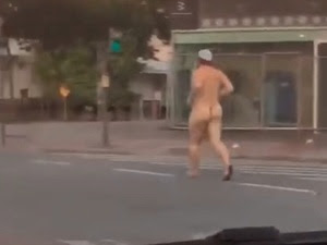 Vídeo registra homem correndo nu e sem máscara em região nobre de BH.