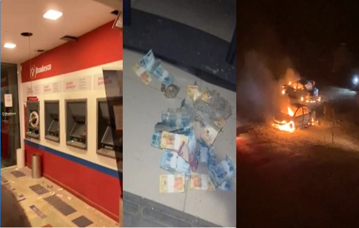 Caixas eletrônicos não foram danificados, muitas cédulas ficaram pelo chão e os veículos usados incendiados