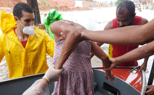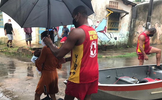 Entres os resgatados no Bairro da Paz, haviam idosos — Foto: Divulgação/Corpo de Bombeiros