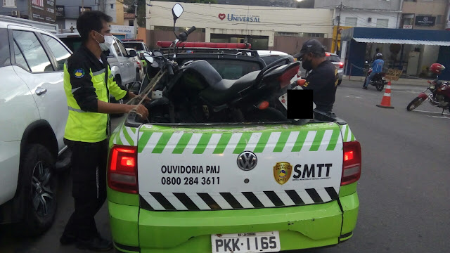 Nesta sexta-feira, 09, agentes de trânsito do Serviço Municipal de Tráfego e Transporte-SMTT, realizaram a remoção de uma motocicleta que estava estacionada sobre a faixa de pedestres na Oraça Getúlio Vargas, próximo ao Mercado Velho em Jacobina.