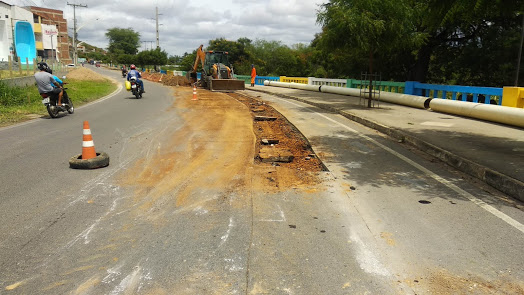 A Av João Fraga Brandão, em Jacobina, passa por serviço de implantação de um nova rede de abastecimento de água. O serviço segue sentido a Ponte Carlos e deixa parte da pista interditada.