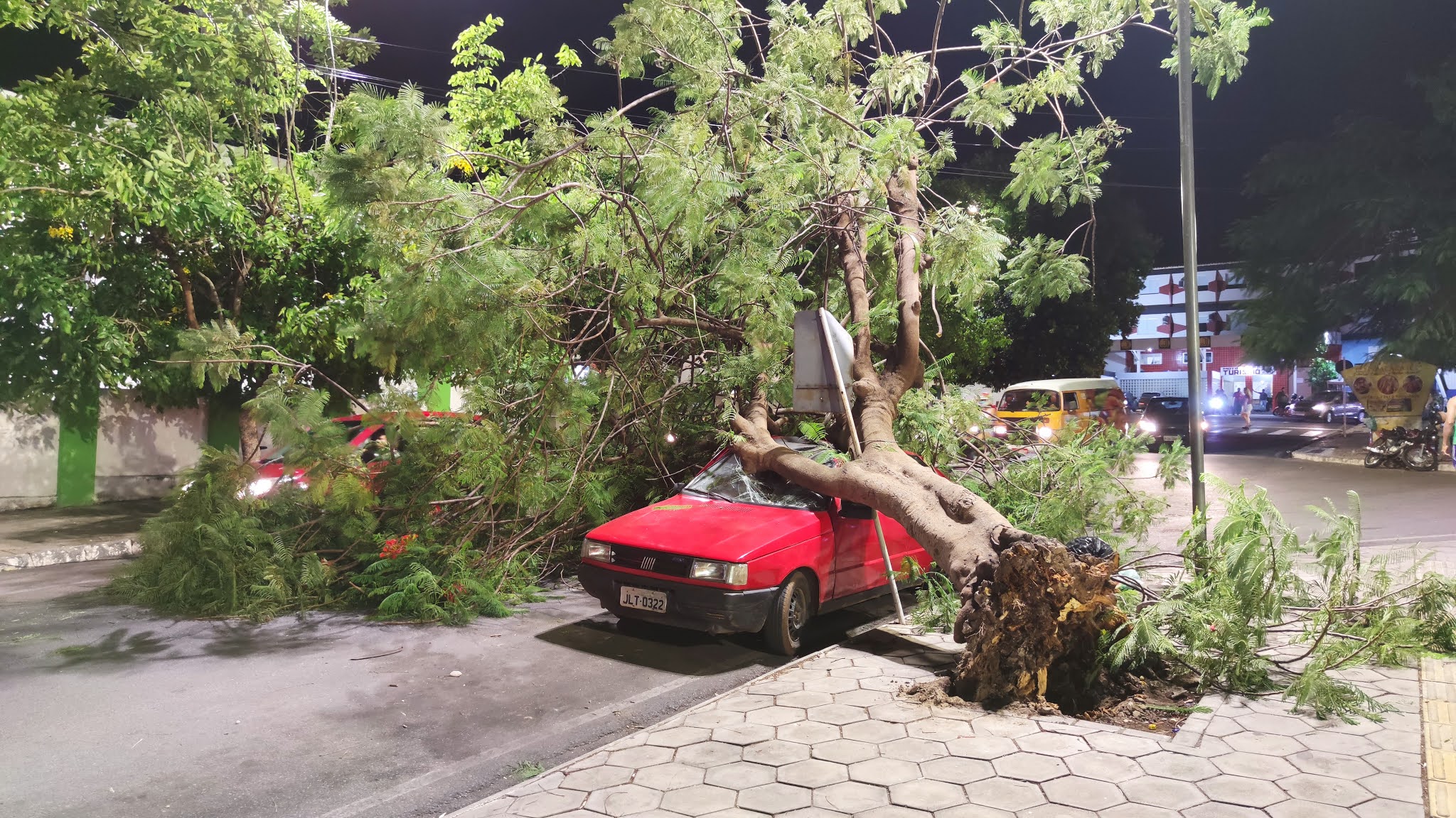 Árvore desaba sobre carro na Praça 2 de Julho em Jacobina