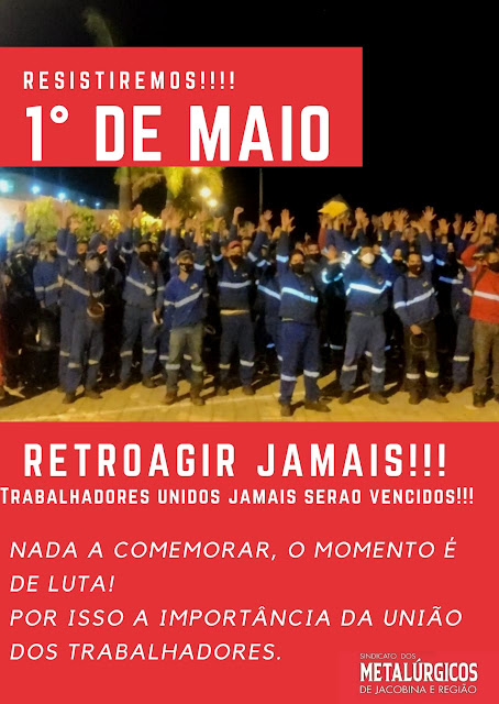 Nesse 1° de Maio não temos nada a comemorar! Já são mais de 400.000 trabalhadores e trabalhadoras que tiverão a sua vida ceifada por negligência do governo Bolsonaro. Também estamos em um momento crítico onde empresas estão querendo escolher qual Sindicato quê irá representar os trabalhadores e trabalhadoras, algo vergonhoso! Vamos a luta!