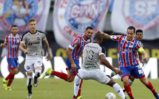 A primeira etapa foi quente e disputada. O Bahia iniciou mostrando vontade e marcando presença no campo de ataque, tomando a iniciativa do jogo. Com Rodriguinho e Nino Paraíba, o Esquadrão encontrava espaços e vinha chegando com perigo, até que Luiz Otávio foi expulso e o ímpeto tricolor teve que ser freado. Mas mesmo com um jogador a menos, o Bahia conseguiu se defender bem e aos 46 minutos o Ceará também teve um jogador expulso.