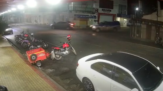 Câmera de um estabelecimento comercial de Nova Fátima mostra o momento que a viatura persegue o carro