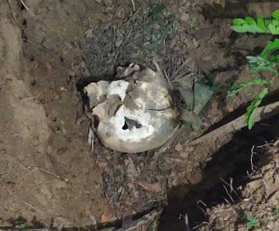 Prepostos da PM foram ao local informado, e encontraram há aproximadamente 30 metros de distância da estrada, um buraco que aparentemente foi reaberto por animais, contento no interior um crânio humano, além de outras partes do corpo.
