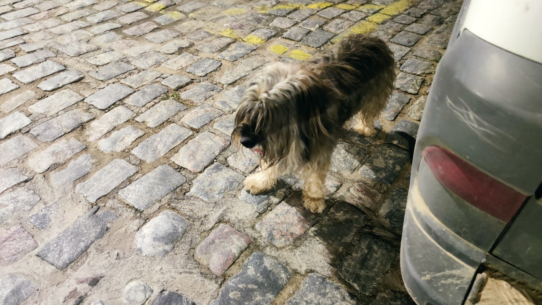 Noite de quinta-feira, 06 de maio de 2021, e aqui na Praça Castro Alves em Jacobina, clicamos um cachorrinho assustado, aparentemente perdido.