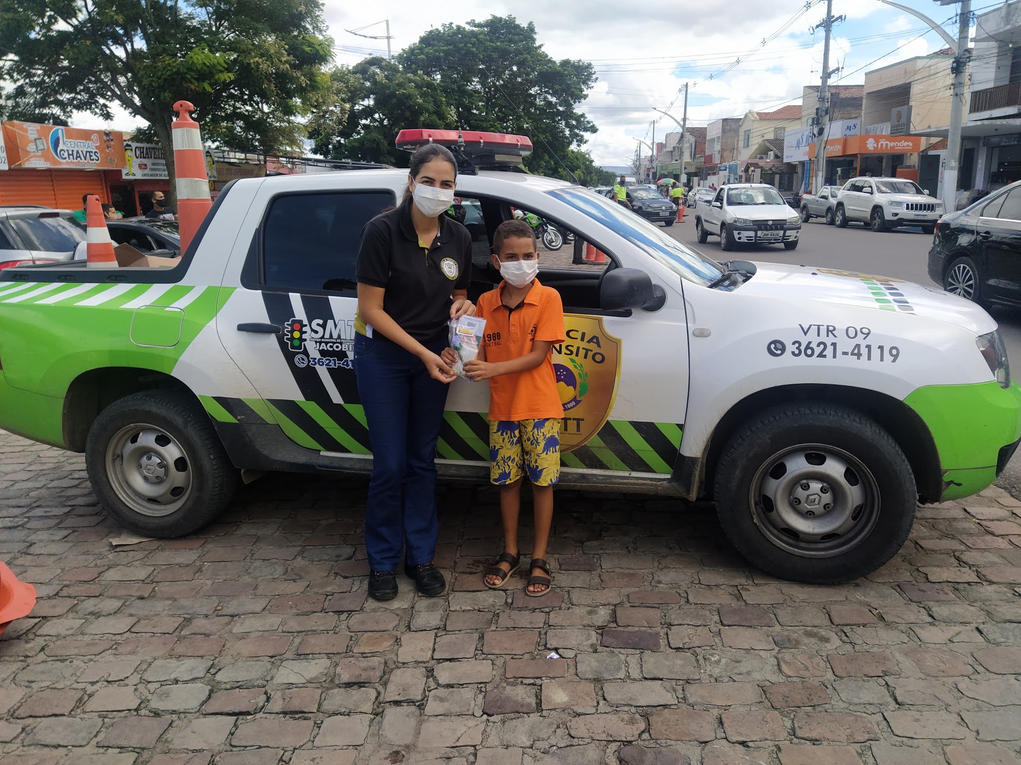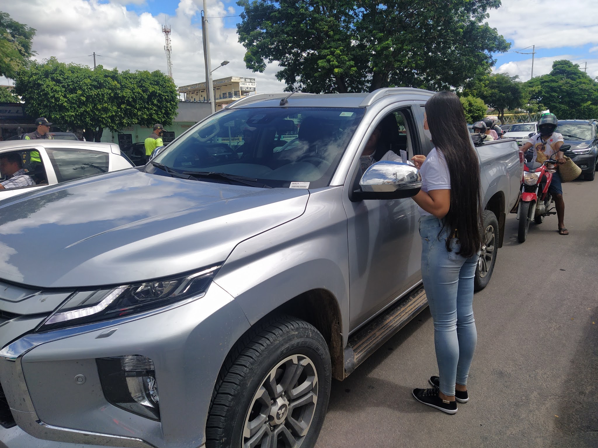 Os condutores eram abordados pela a equipe do SMTT, recebiam plânfletos e orientações sobre a importância de respeitar as leis de trânsito e evitar acidentes.