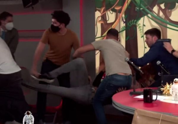 A confusão esquentou, e após troca de insultos os dois saíram no soco. A produção do programa acabou inserindo vinhetas do Programa do Ratinho, e Rogério Morgado começou a “narrar” a briga, imitando o apresentador. Os participantes do programa tiveram que separar a briga e, em seguida, Emílio Surita chamou o intervalo.