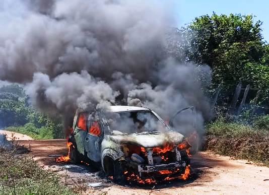 Nesta quarta-feira dia 12, um carro pegou fogo na estrada do povoado do Humaitá, próximo a Fazenda São José, no município de Ruy Barbosa-BA.