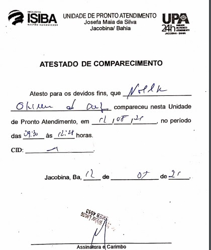 Veja abaixo o laudo médico apresentado pelo vereador Noelson Oliveira: