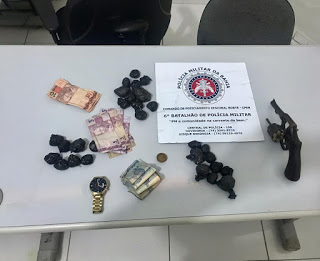 Após buscas nas proximidades, os policiais encontraram uma sacola com 28 trouxas de substância análoga a maconha, 01 relógio marca Ronesi, R$ 130,00 reais, uma arma cal. 38, nº 169792, com dois cartuchos deflagrados e quatro intactos, posteriormente a guarnição foi informada pelo CICOM que o SAMU havia prestado socorro a um homem com ferimentos por arma de fogo, próximo aos Pebas, logo após conduzido ao Hospital Regional onde encontra-se custodiado. ■FONTE: ASCOM – 6º BPM