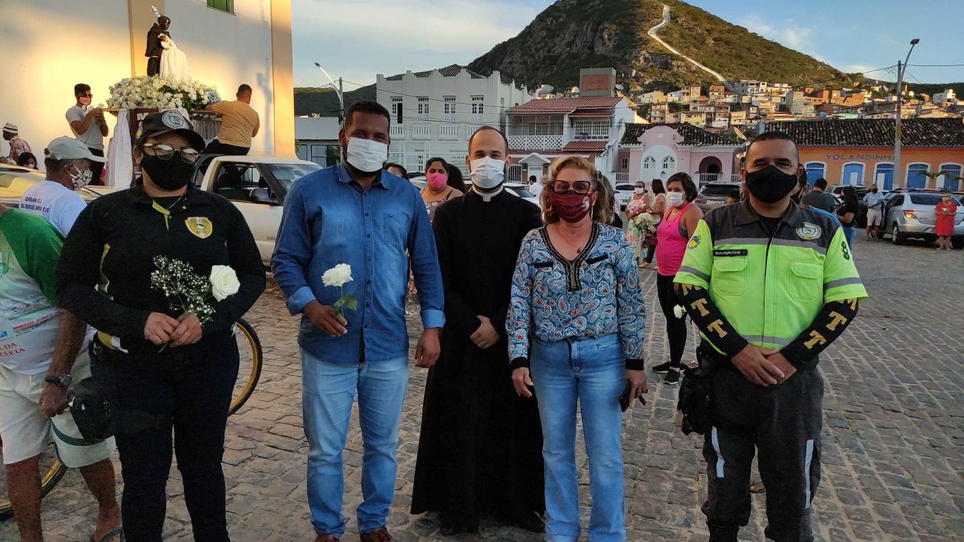 O prefeito Tiago Dias compareceu so evento, que teve a tradicional procissão acompanhada 9ela Marujada suspensa, devido a pandemia do Coronavírus.