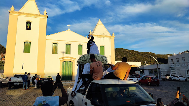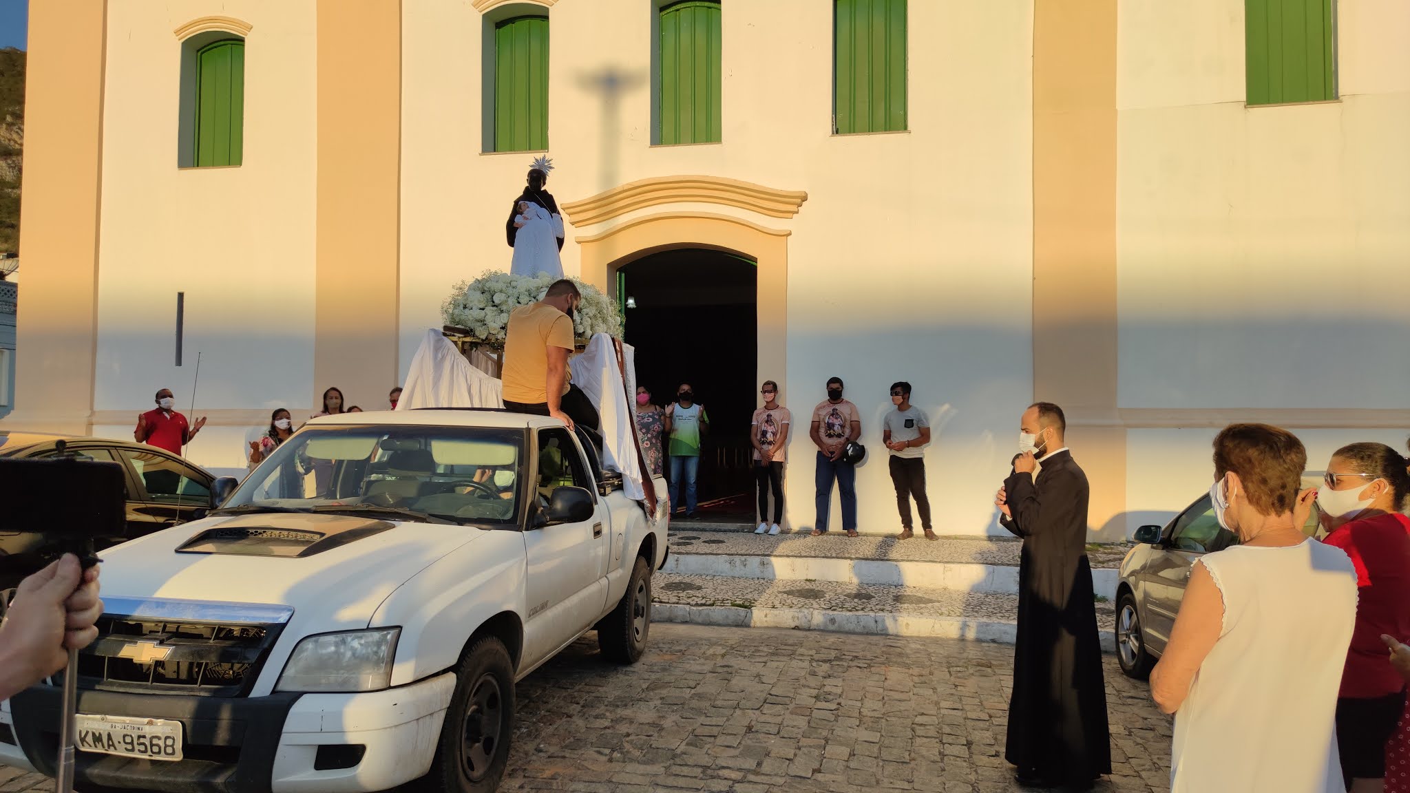 Sem procissão, carreata leva imagem de São Benedito pelas ruas de Jacobina