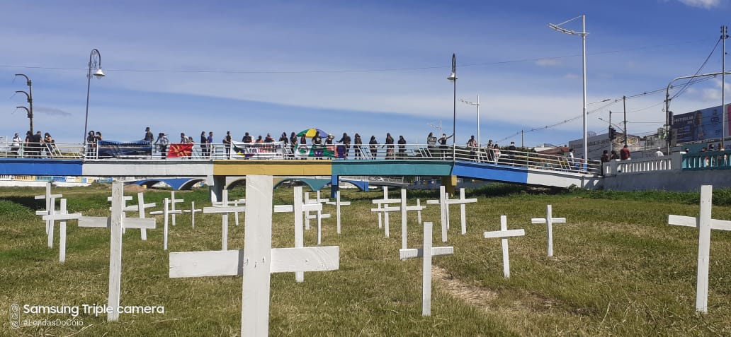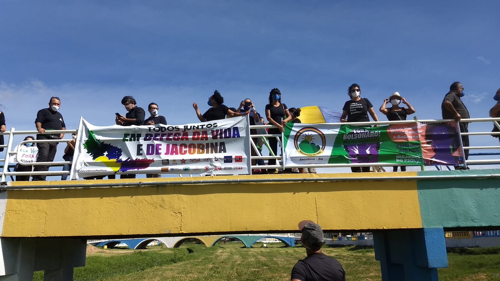 Enfim, o ponto que foi escolhido para finalizar o ato foi a passarela da Feira Livre, todos os presentes seguiram para o local e se dividiram de modo a evitar aglomeração. Num gesto simbólico foram fincadas 72 cruzes no leito do rio para simbolizar as mortes que já ocorram em Jacobina decorrentes da Pandemia. Um série de fotos e vídeos do evento foram disponibilizados nas redes sociais, o site: https://ManifestaJacobina.com.br/ForaBolsonaro