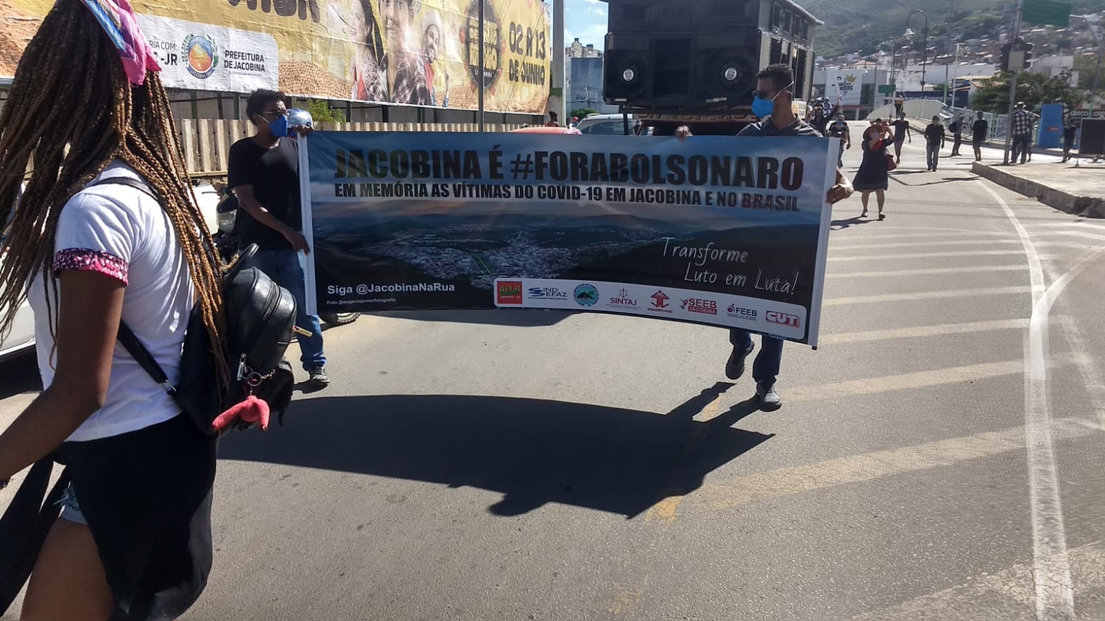 Os manifestantes seguiram em passeata apoiada por um carro de som que circulou na área da feira livre de Jacobina, durante o deslocamento convidaram a população para uma reflexão sobre os resultados negativos provocado pelo Governo negacionista de Bolsonaro. Foram ecoados gritos de ordem em favor da vida, da saúde pública e do direito à vacina e da democracia que ora foram sabotados pela equipe que está no poder.