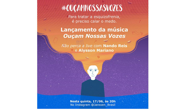 Com transmissão ao vivo pela internet, da qual participarão os músicos Nando Reis e Allyson Mariano, será lançada a música inédita Ouçam Nossas Vozes, tema da campanha com o mesmo nome, cujo objetivo é dar apoio a pacientes com esquizofrenia e derrubar o preconceito contra a doença.