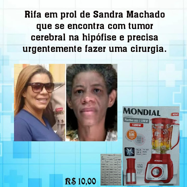 Agora uma rifa de um liquidificador foi feita no valor de R$ 10,00 e quem puder ajudar, entrar em contato (74) 9.8119-2539, falar com Meire Santana.