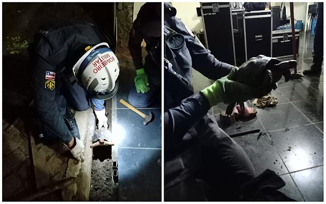 Bombeiros do 3º GBM/Iguatemi foram trabalhar no resgate. Para retirar o animal, eles precisaram fazer uma espécie de acesso. "Tivemos que quebrar todo o concreto com bastante cuidado para não machucar o animal, principalmente o casco que é a principal proteção dele", explica o subtenente BM Fabio Nascimento de Souza. Depois, o animal foi avaliado e devolvido ao tutor.