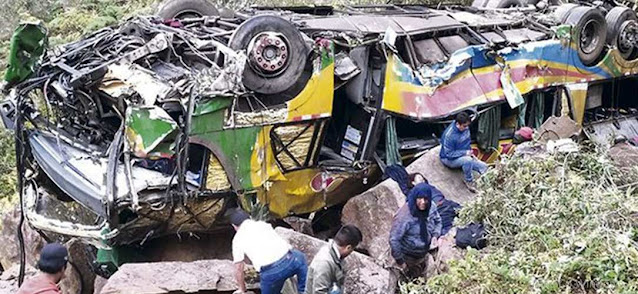 "Pelo menos 18 mortos e vários feridos foram deixados em um acidente em uma rota no departamento de Chuquisaca, sudeste da Bolívia, quando um ônibus de passageiros caiu de um penhasco, informou a polícia."