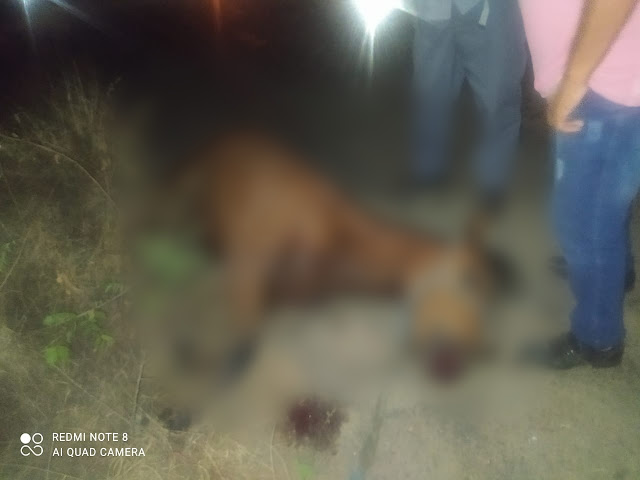 Não há informações de quantas pessoas haviam no veículo, que ficou com a frente destruída, causando a morte do animal no local.