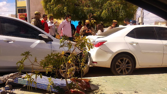 O veículo atingiu um Toyota Corolla que estava estacionado do outro lado do canteiro. Ainda não se sabe o que provocou o acidente, que deixou muitas pessoas assustadas. Felizmente, não houve vítimas. Prepostos da Polícia Militar registram a ocorrência.