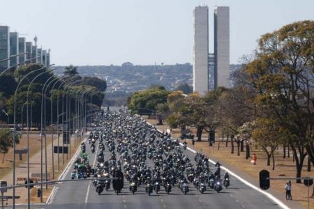 O presidente Jair Bolsonaro (sem partido) chamou apoiadores para um passeio de moto por Brasília neste domingo (8/8), Dia dos Pais. O trajeto inclui regiões administrativas do Distrito Federal, como Ceilândia e Taguatinga. A concentração ocorreu na Praça dos Três Poderes e o comboio de motociclistas saiu às 9h40 pela Esplanada dos Ministérios.