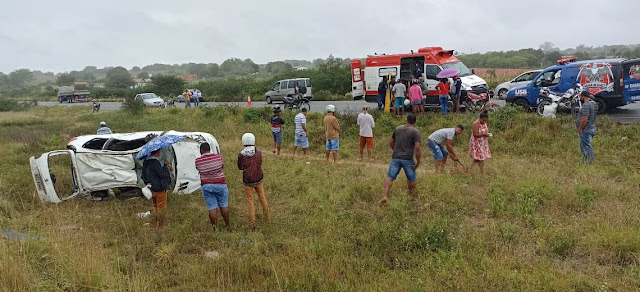 Um acidente tipo capotamento na BA 411 trecho que liga o Distrito Salgadália a Conceição do Coité no início da tarde desta segunda-feira, 23, deixou três pessoas feridas, sendo dois do sexo masculino e uma mulher grávida. Segundo informações tinha mais uma pessoa que muito provavelmente não teve ferimentos graves e não foi encontrada no local.