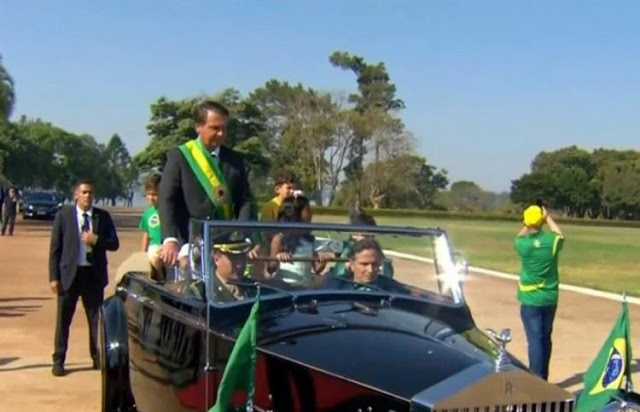 Dando início a cerimônia do 7 de setembro na Esplanada do Ministérios, o presidente Jair Bolsonaro iniciou no Rolls-Royce presidencial, com o ex-piloto de Fórmula 1 Nelson Piquet ao volante. Em direção ao Palácio da Alvorada para o hasteamento da bandeira, ele cumprimentou apoiadores e tirou foto com ministros.