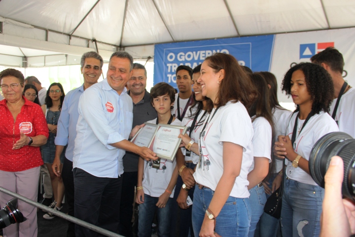 Ainda em Paripiranga, Rui homenageou 12 alunos da rede estadual do município, que foram finalistas nas olimpíadas nacionais de história e matemática. O governador também visitou o Colégio Estadual Governador Roberto Santos e o Colégio com disciplina Militar, mais conhecido com CPM, que foi implantado na Escola Municipal Maria José dos Santos Lima.