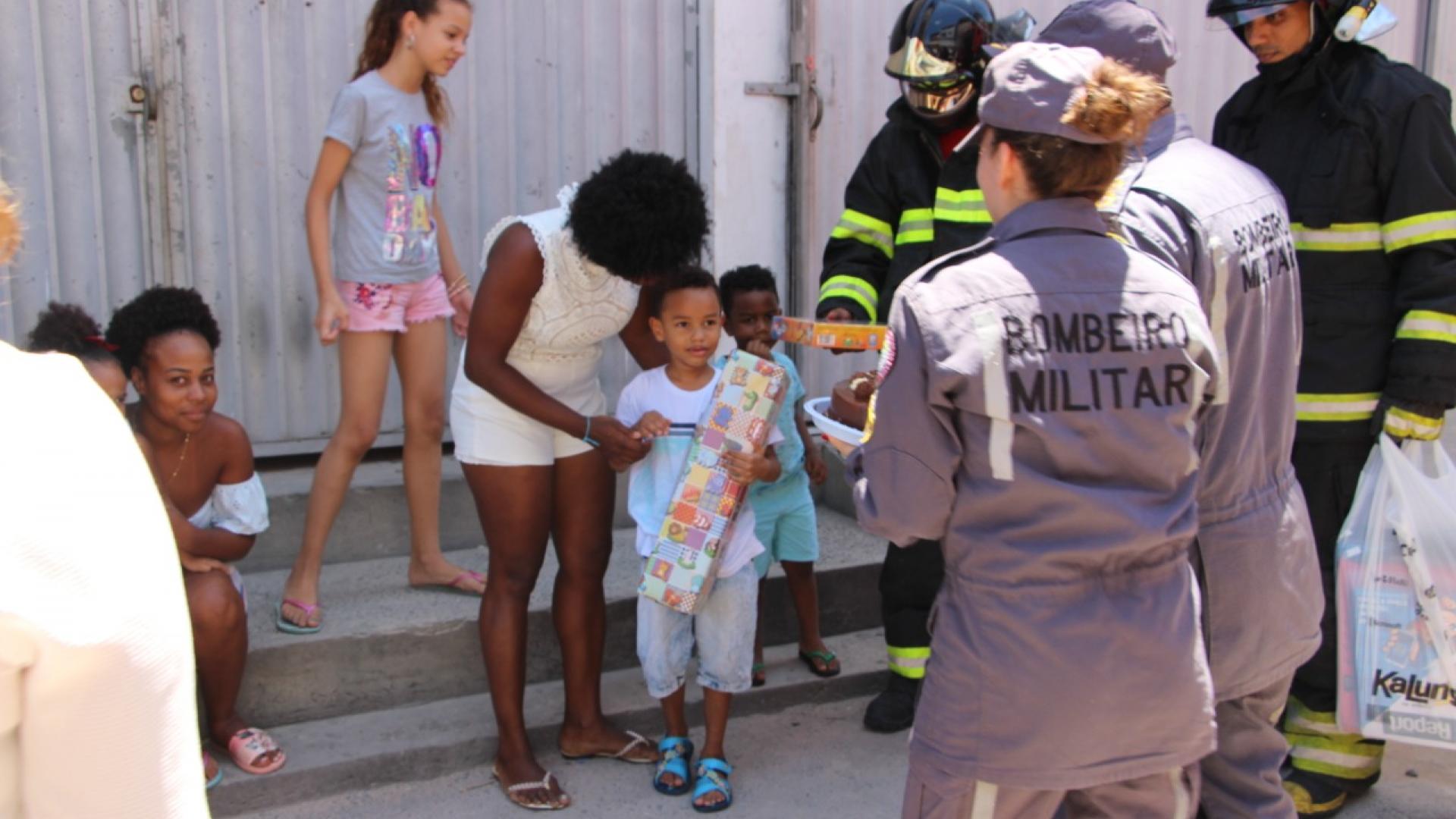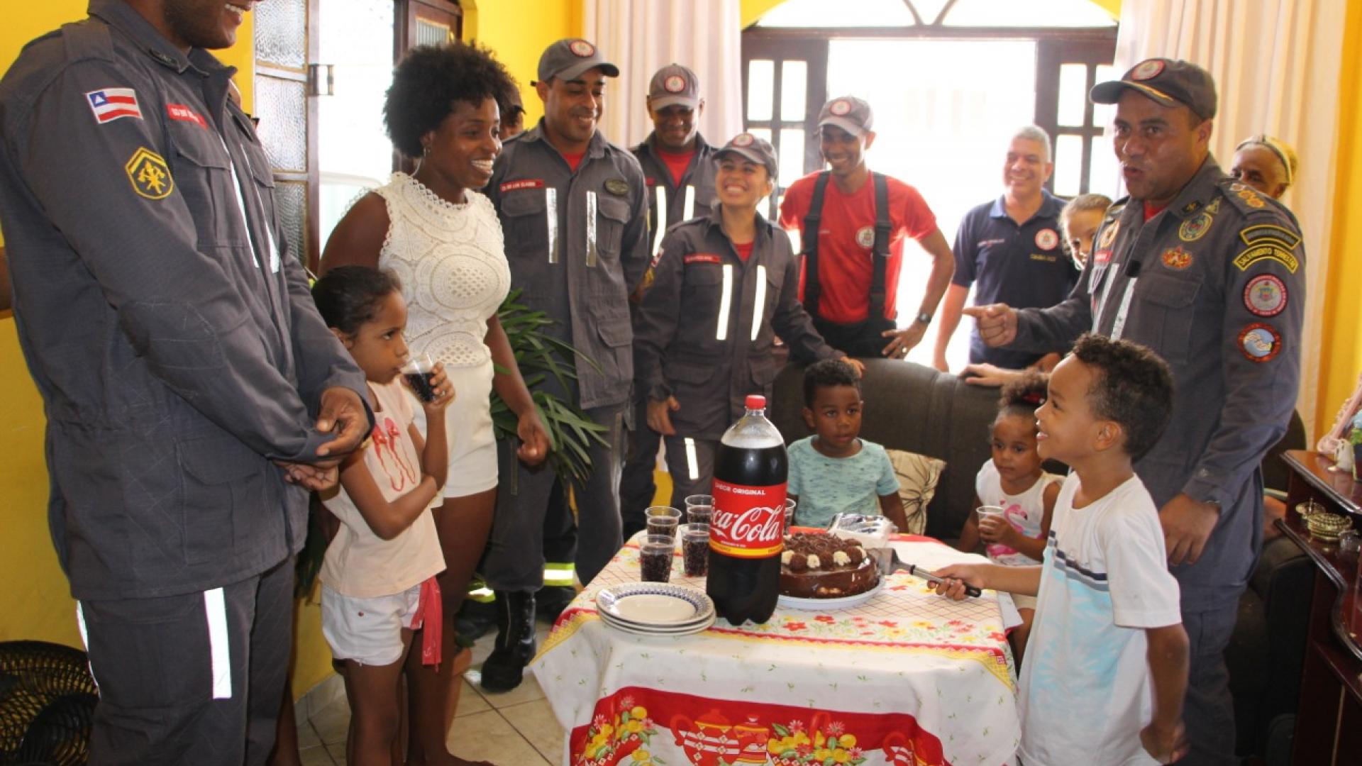Quando as sirenes do caminhão dos bombeiros soaram no início da tarde da última sexta-feira (28), o pequeno Brian Davi Henrique saiu de casa com o olhar curioso. No momento em que a viatura parou na frente da residência do garoto, ele olhava ao redor e não via sinal de fumaça nem de fogo. Mal sabia ele que a visita era para comemorar seus seis anos. Os parabéns e o bolo entregue por uma bombeira deixaram o pequeno aos prantos de emoção.