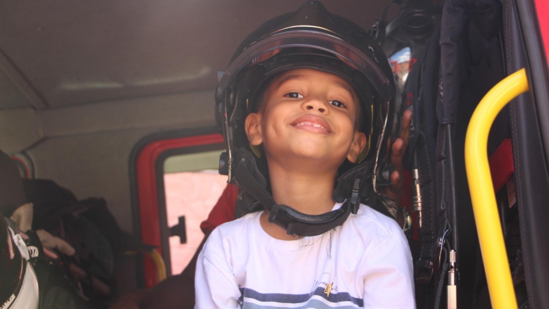 Além do material e do bolo, Brian ganhou um caminhão de bombeiro. Perguntado sobre o que queria ser quando crescer, ele não pestanejou: “Vou ser bombeiro!”, e saiu com o sorriso no rosto enquanto cortava o bolo e entregava aos militares.