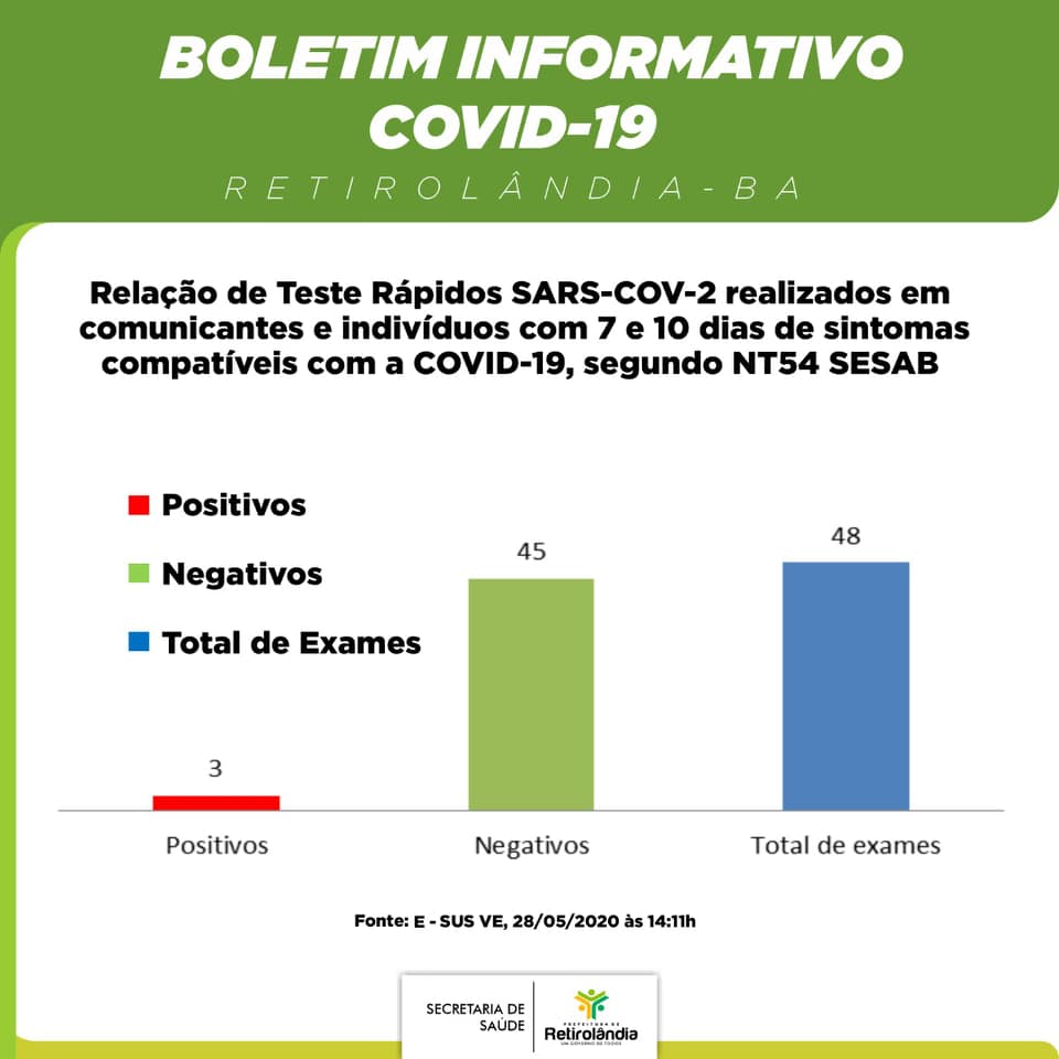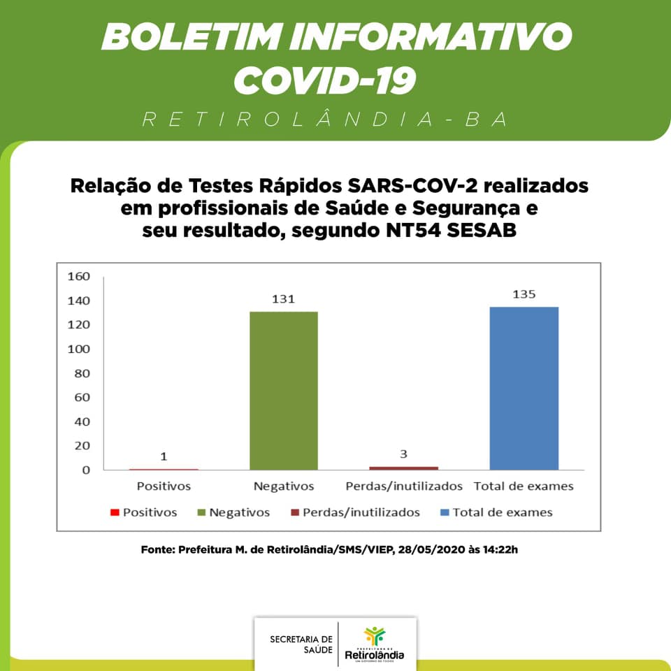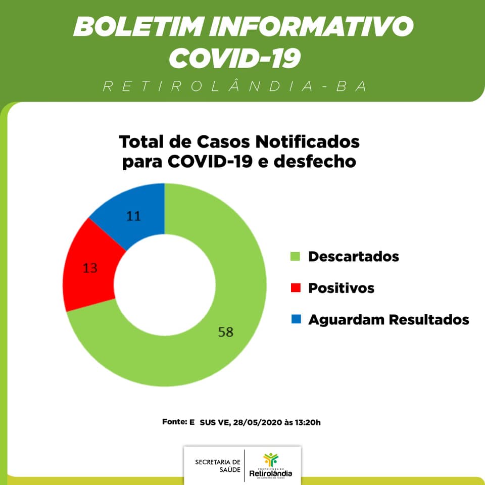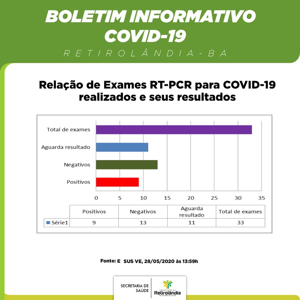 A Secretaria de Saúde junto a Vigilância Epidemiológica de Retirolândia divulgaram na noite de quinta-feira, 28, que a Covid-19 infectou a 13 pessoas e destaca as infecções abrangentes à localidades, gêneros, faixa etária e dentre outros. Os gráficos e tabelas foram elaboradas por Moisés Almeida, enfermeiro sanitarista, coordenador de Atenção Básica do município de Retirolândia.