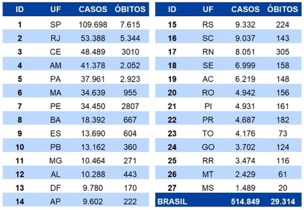 514.849 casos confirmados, eram 498.440 no sábado