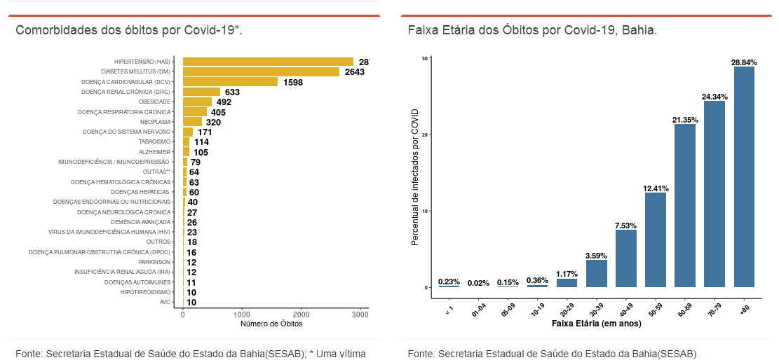 Veja o gráfico detalhado em duas situações, mortes com as doenças associadas e faixas etárias.