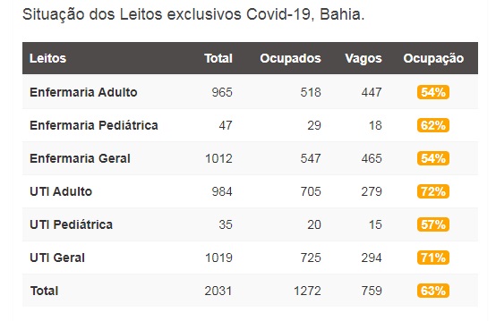 Veja a realidade atual da ocupação de leitos na Bahia