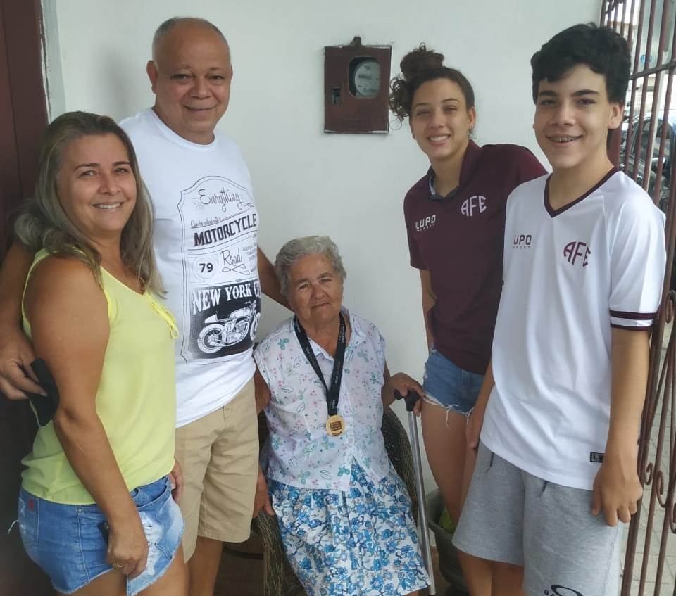 O casal Fonseca e Fátima os dois filhos e a matriarca Dona Eridan que já recebeu vacina da Covid-19