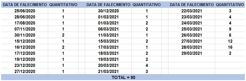 A existência de registros tardios e/ou acúmulo de casos deve-se a sobrecarga das equipes de investigação, pois há doenças de notificação compulsória para além da Covid-19. Outro motivo é o aprofundamento das investigações epidemiológicas por parte das vigilâncias municipais e estadual a fim de evitar distorções ou equívocos, como desconsiderar a causa do óbito um traumatismo craniano ou um câncer em estágio terminal, ainda que a pessoa esteja infectada pelo coronavírus.