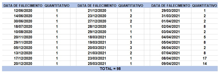 A existência de registros tardios e/ou acúmulo de casos deve-se a sobrecarga das equipes de investigação, pois há doenças de notificação compulsória para além da Covid-19. Outro motivo é o aprofundamento das investigações epidemiológicas por parte das vigilâncias municipais e estadual a fim de evitar distorções ou equívocos, como desconsiderar a causa do óbito um traumatismo craniano ou um câncer em estágio terminal, ainda que a pessoa esteja infectada pelo coronavírus.