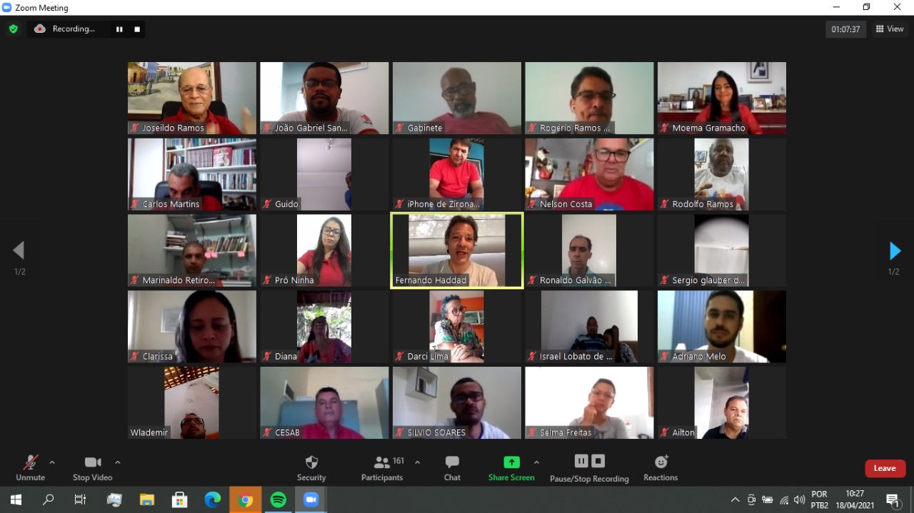 Líderes petistas se reuniram na manhã deste domingo (18), na plenária virtual do mandato do deputado federal Joseildo Ramos (PT/BA), para discutir a responsabilidade do Governo Bolsonaro no enfrentamento ao coronavírus e a atual situação da pandemia no país.