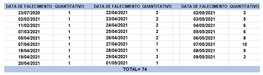 A existência de registros tardios e/ou acúmulo de casos deve-se a sobrecarga das equipes de investigação, pois há doenças de notificação compulsória para além da Covid-19. Outro motivo é o aprofundamento das investigações epidemiológicas por parte das vigilâncias municipais e estadual a fim de evitar distorções ou equívocos, como desconsiderar a causa do óbito um traumatismo craniano ou um câncer em estágio terminal, ainda que a pessoa esteja infectada pelo coronavírus.