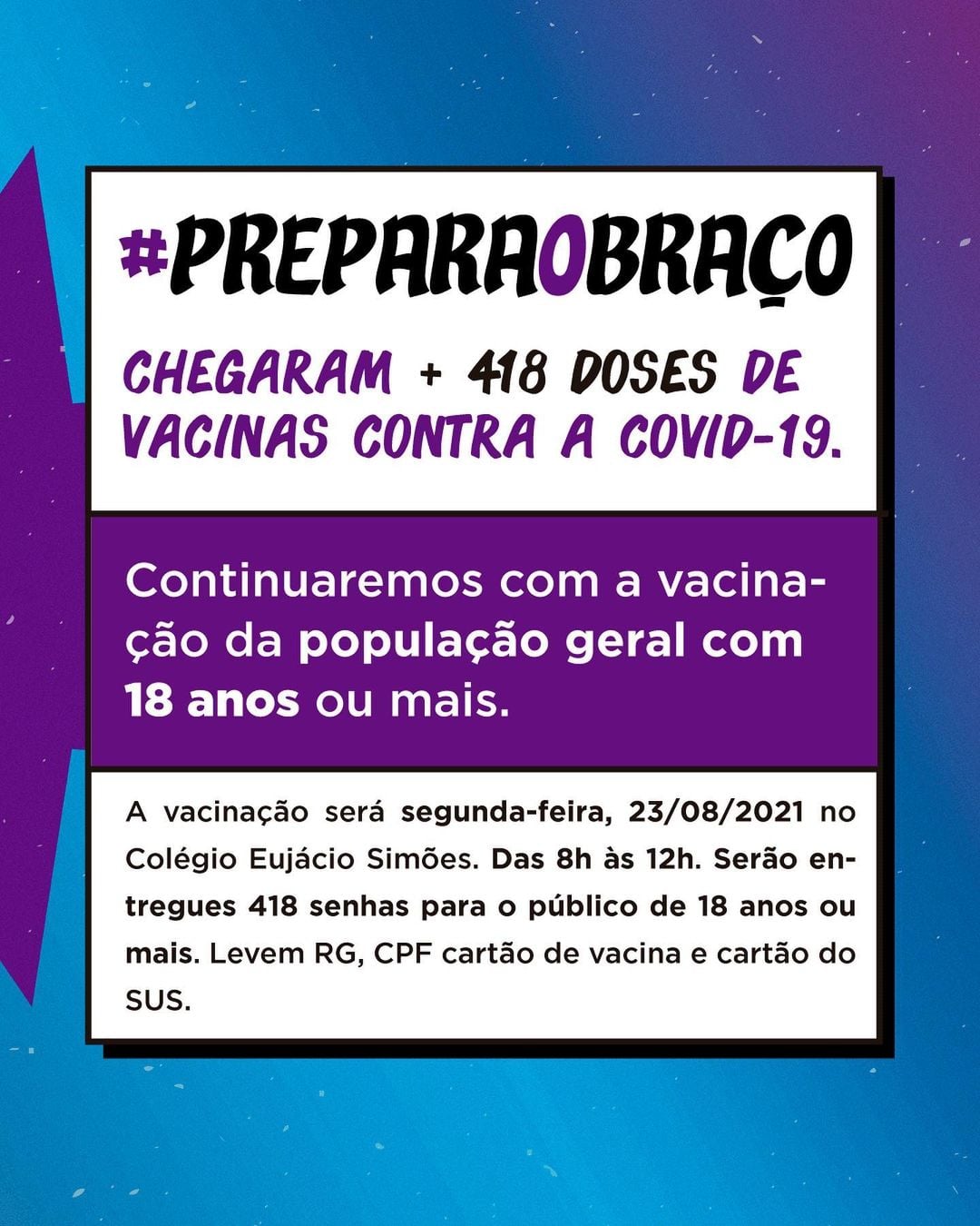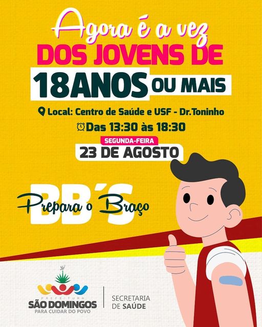 Mas para esta segunda-feira, 23, tem pelo menos 5 municípios convocado jovens de 18 anos ou mais.