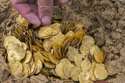 Mergulhadores acabam de encontrar duas mil moedas de ouro no fundo do antigo porto de Cesareia, na costa mediterrânea de Israel. As moedas de mil anos constituem o tesouro mais importante já encontrado em Israel. O anúncio foi feito nesta última semana pela Autoridade Nacional de Antiguidades. A descoberta foi feita por acaso, por membros de um clube de mergulho. O grupo encontrou o tesouro arqueológico após tempestades removerem o fundo do mar de Cesareia. No início, os mergulhadores acreditaram que se tratavam de fichas de jogo, mas, ao recolherem várias moedas, perceberam que se tratava de um tesouro. Eles então avisaram ao diretor do clube, que, por sua vez, informou as autoridades. Os mergulhadores da autoridade detectaram 2.000 moedas de dinares, meio dinar e um quarto de dinar, a mais antiga cunhada em Palermo (Sicília) na segunda metade do século IX. Muitas das moedas remontam a dois reinados do fim do século X e XI. Segundo informações de um especialista em numismática, ciência que estuda moedas e medalhas, as moedas estão "em excelente estado de conservação, apesar dos mil anos no fundo do mar, e não precisaram de uma limpeza", revelou Robert Cole. Algumas das moedas chegam a apresentar marcas de mordidas, o que mostra que seus donos comprovaram sua qualidade com os dentes. "As peças podem ser provenientes do naufrágio de um barco que transportava a arrecadação de impostos destinada ao governo central no Egito", afirma Kobi Sharvit, diretor da unidade de arqueologia marinha da autoridade das antiguidades. (G1)