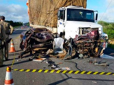 Um motorista morreu em um acidente envolvendo um caminhão e um carro na BR-116, em Vitória da Conquista, no Sudoeste da Bahia. O acidente aconteceu por volta das 7h deste sábado (7), no km-863. Segundo a Polícia Rodoviária Federal (PRF) o motorista do carro de passeio ficou preso às ferragens e não resistiu após a colisão, que deixou o veículo completamente destruído. O motorista, que não teve o nome divulgado, morreu no local. O trânsito ficou lento no local do acidente. (Correio)