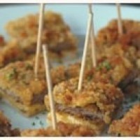 Passe o filé mignon no tempero e empane com a farinha de pão italiano misturado com o parmesão. Leve-o à frigideira e frite com a manteiga e o óleo. Tome cuidado para não quebrar o filé quando for virá-lo. Enquanto isso, monte o pão de forma em uma assadeira e por cima coloque o queijo prato. Leve para salamandra e espere o queijo derreter. Monte o filé mignon sobre o pão de forma e sirva conforme a foto.